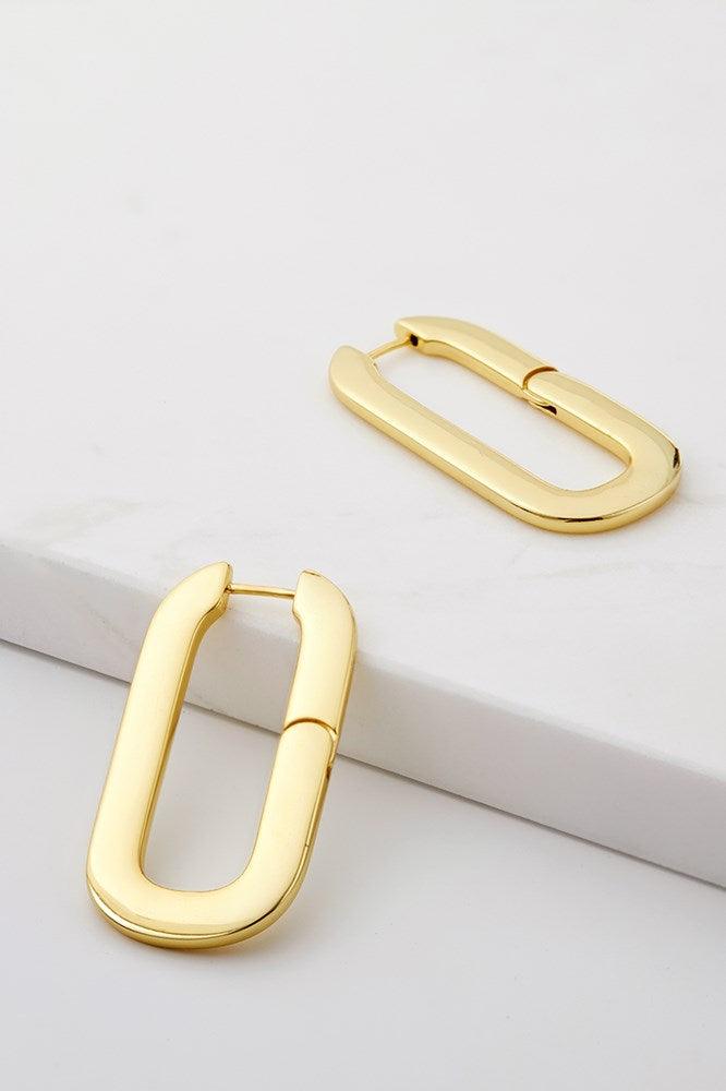A statement-making accessory that exudes modern style and confidence. These hoops feature a large link design, adding a touch of boldness and edginess to your look. Crafted with meticulous attention to detail, the Hattie Hoop earrings are a versatile and fashionable choice that can effortlessly elevate any outfit. Whether worn with casual attire or dressed up for a special occasion, these hoops are sure to make a striking impression.
