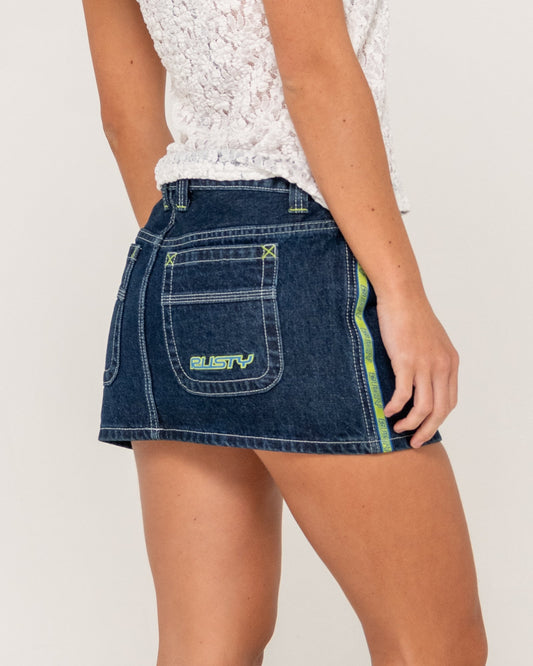 Flip Mommy Low Rise Denim Mini Skirt - Deep Blue / Lime
