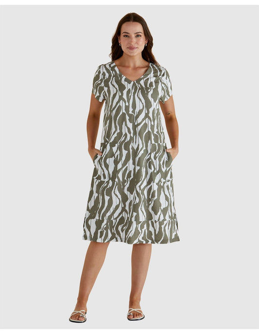 Elwood Dress - Olive Geometric Print