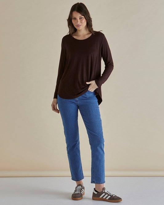 Yasmin Long Sleeve Top - Chocolate Brown