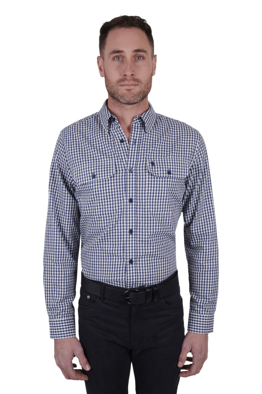 Gino Wool 2-Pocket LS Shirt - Navy / White