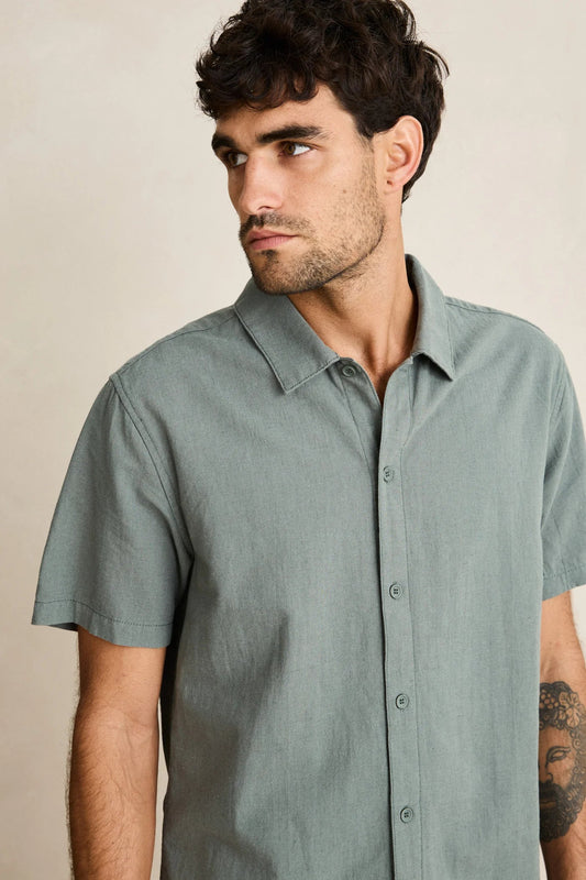 Classic Linen Short Sleeve Shirt - Silver Pine