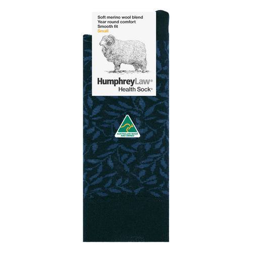 Womens Fine Merino Wool Patterned Health Sock - Leaves