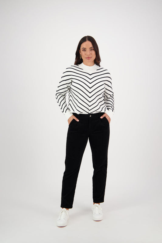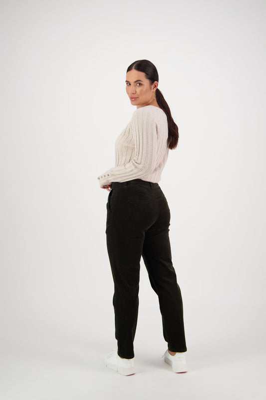 Ankle Grazer Relaxed Boyfriend Cord Pant - Black