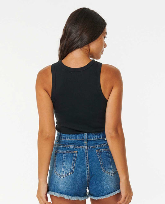 Nineties Ribbed Skimmer Length Tank - Yonder Blue