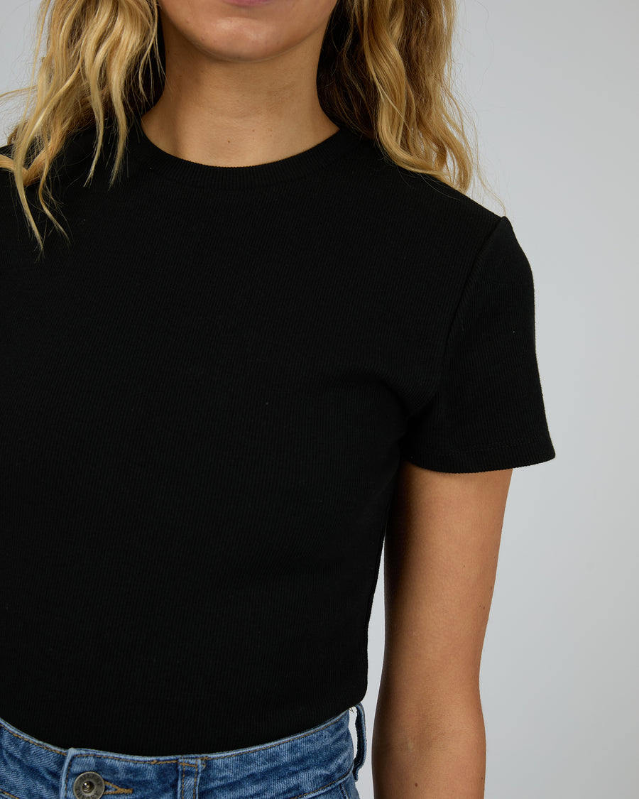 A fresh essential for your everyday wardrobe, the Bella Tee by Silent Theory features a slim fit, ribbed fabrication, and flattering capped sleeves. With a classic crew neckline and soft stretch feel, it’s perfect for layering or wearing solo.