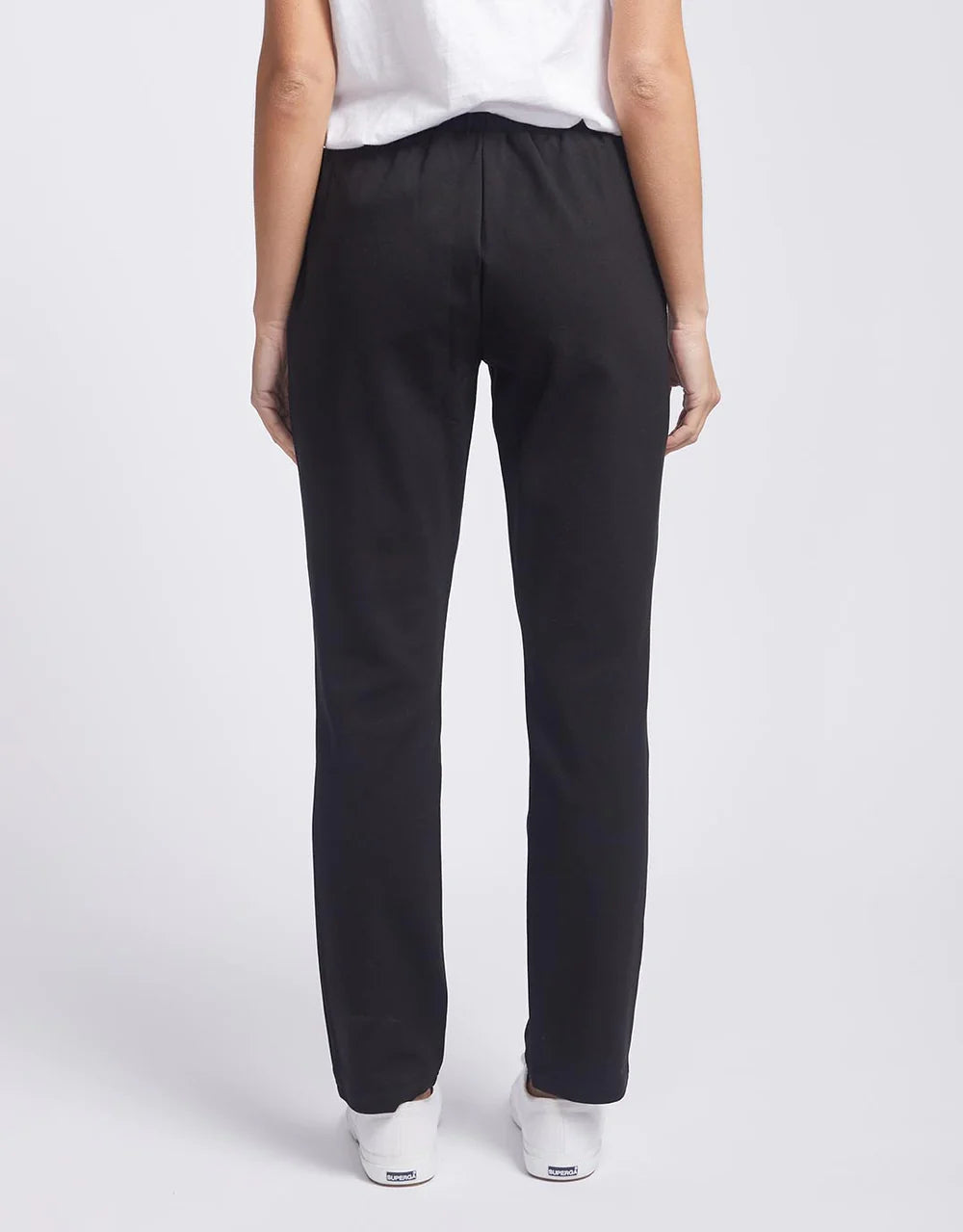 Elevate your everyday wardrobe with the Au Revoir Ponte Pant in Black by Betty Basics. Designed with a flattering slim silhouette and ankle-length cut, this versatile women’s stretch pant delivers polished style with all-day comfort. The flat front elastic waistband offers a smooth, pull-on fit, while angled side pockets add practical detail without bulk.