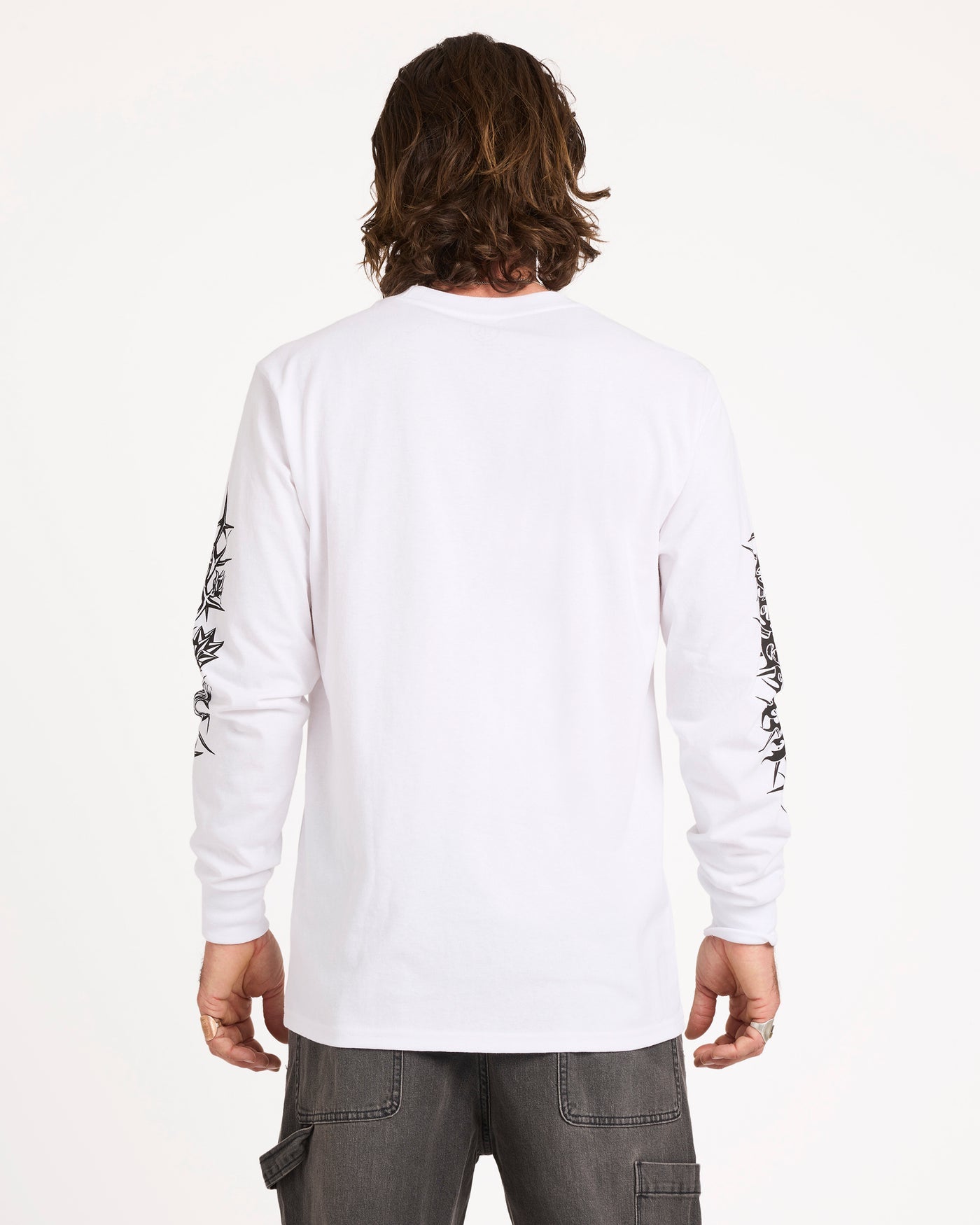 Level up your everyday essentials with the Die By The Stone Long Sleeve Tee - White by Volcom. Designed in a classic fit with a timeless crew neckline, this long sleeve tee features bold screen prints down both sleeves for signature Volcom edge. Ribbed cuffs and neck band deliver structure and comfort, making it an easy go-to for layered streetwear style.