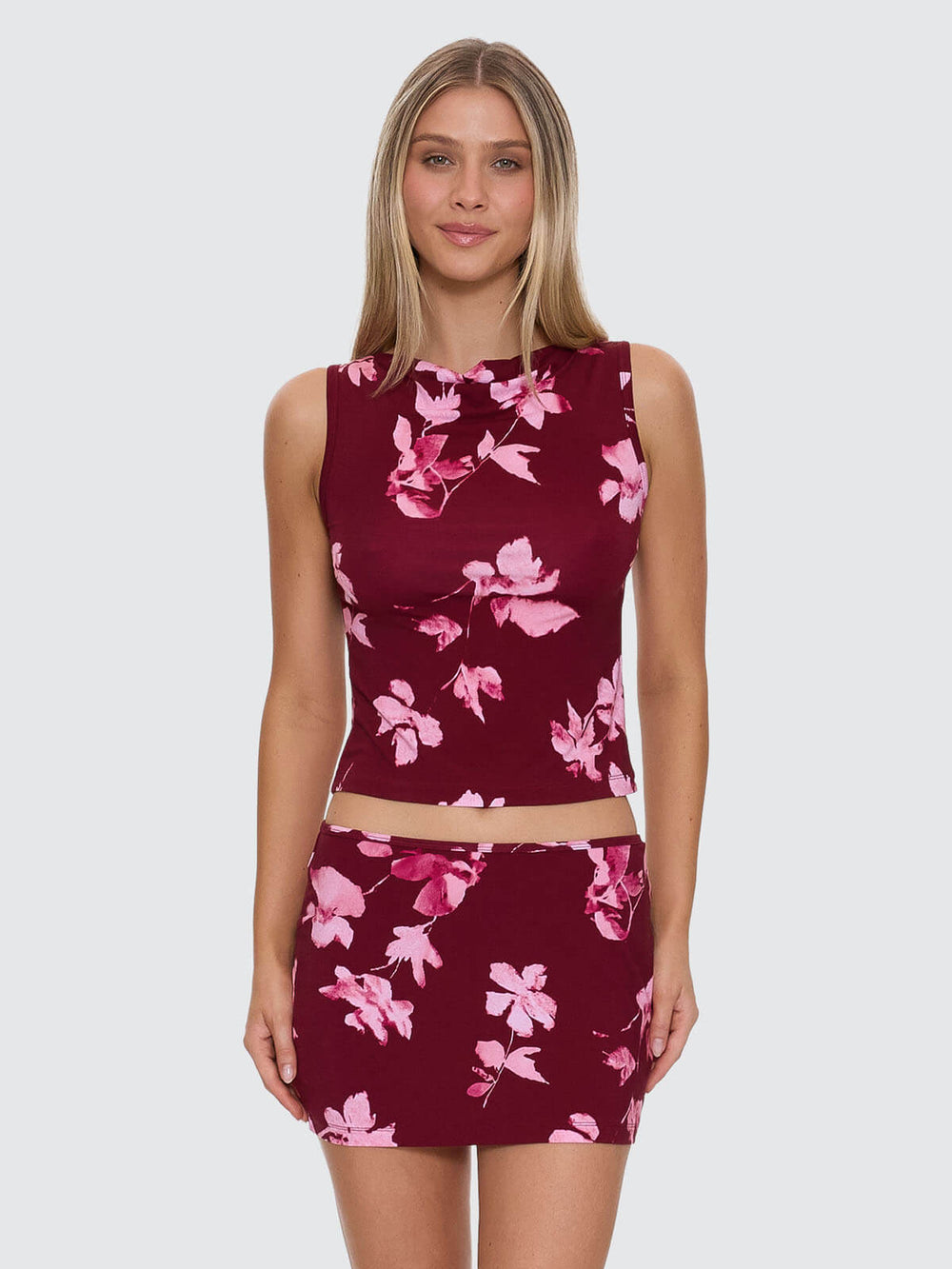 The Thrills Full Bloom Tank in Pomegranate delivers bold floral energy with a sleek, modern edge. Made from soft modal-elastane jersey, it offers a smooth, stretchy fit with a high neckline and a flattering regular silhouette. Easy to style with denim or the matching Full Bloom Mini Skirt, this tank is a standout staple for everyday streetwear.