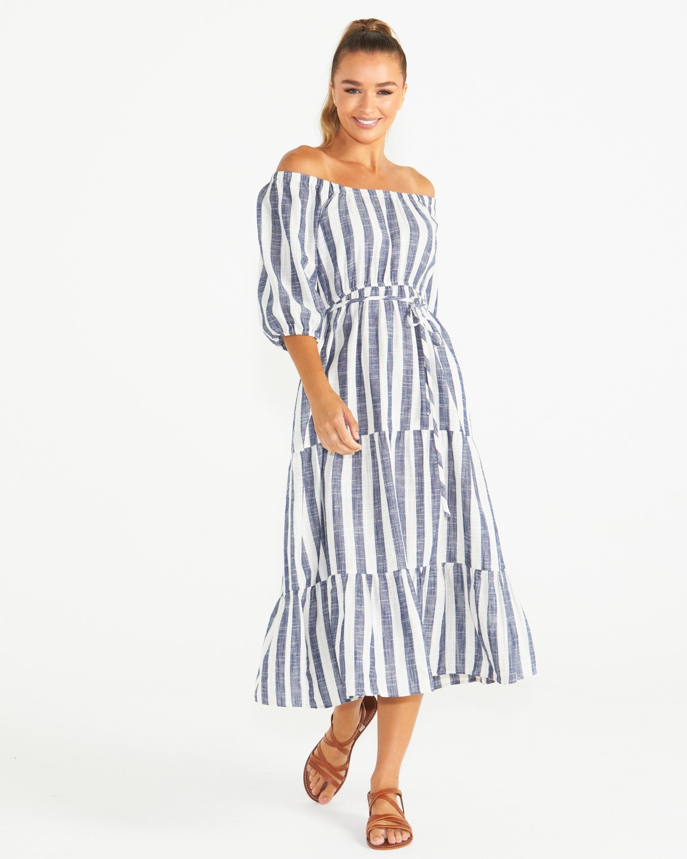 The Harley Midi Dress is the epitome of relaxed elegance. Wear it on or off the shoulder, and enjoy the tiered skirt and elasticated waist for a springtime look that's both comfortable and elevated.