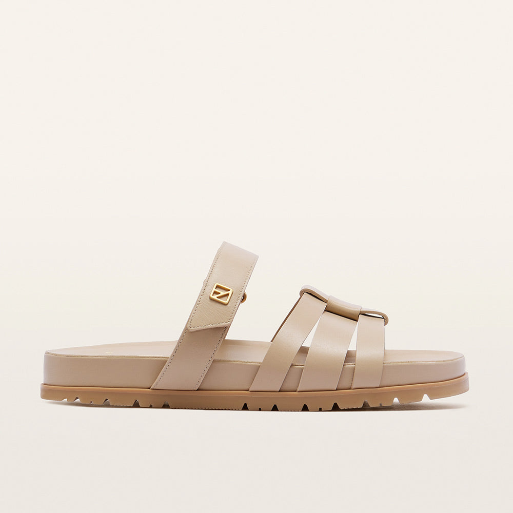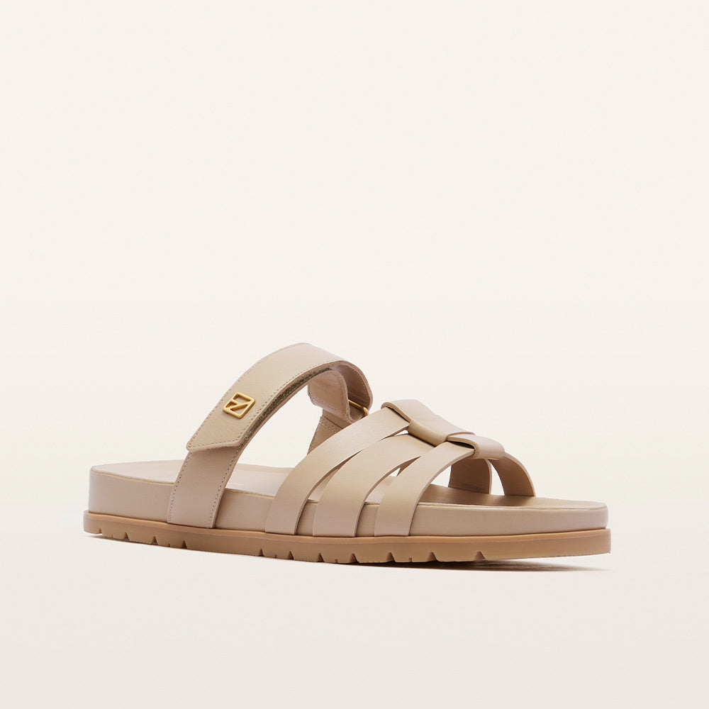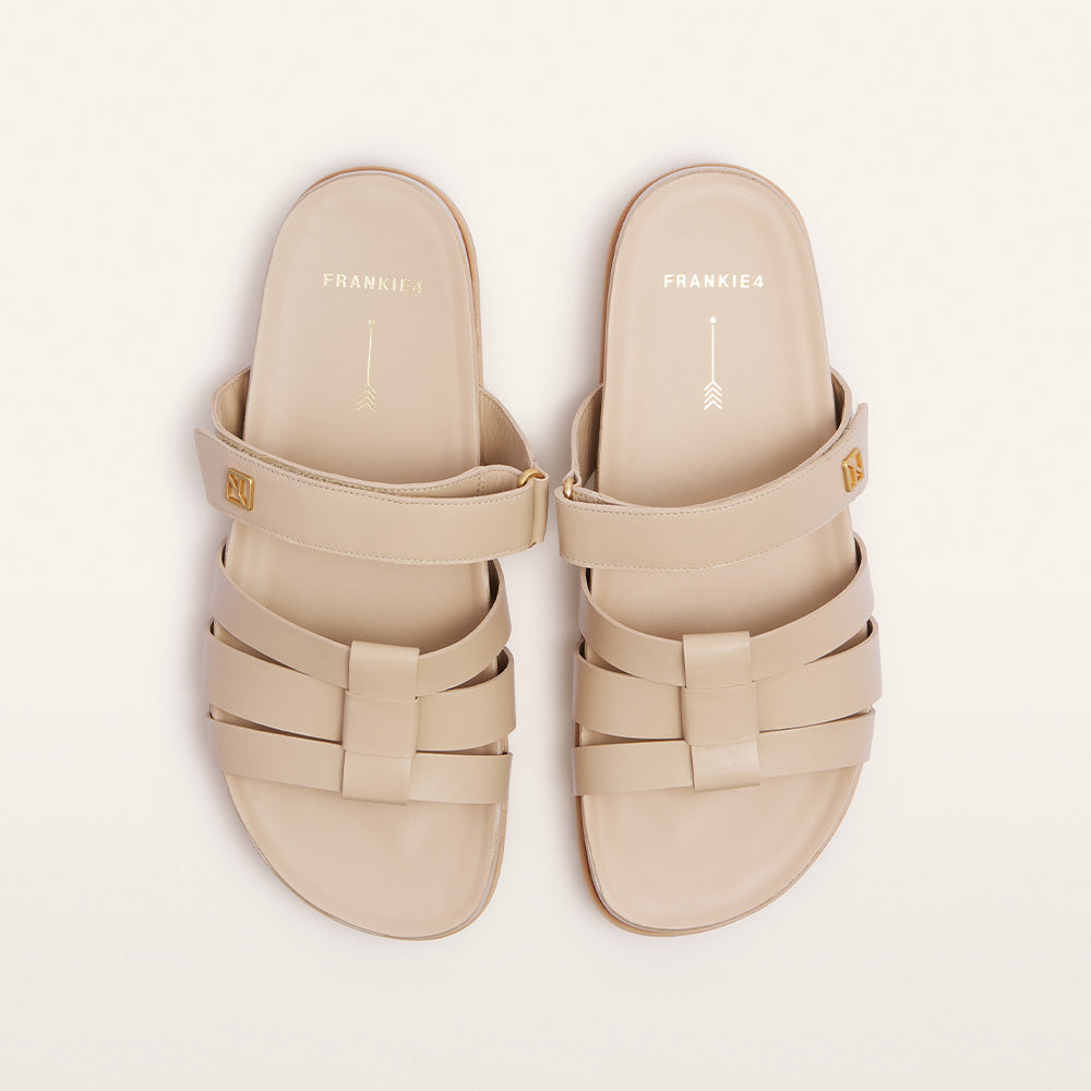 The FRANKIE4 Kendall Slide in Oat Milk blends minimalist style with everyday practicality. Designed with structured leather straps, an adjustable instep strap, and a durable grippy rubber sole, Kendall offers secure comfort and effortless versatility. Underfoot, the podiatrist-designed Sole Hero® Footbed provides built-in heel, arch, and forefoot support, enhanced by a triple-layer cushioning system to help prevent and alleviate common foot pain. Light, flexible, and crafted for long days on the move, Kendall is the perfect balance of style and wellness.