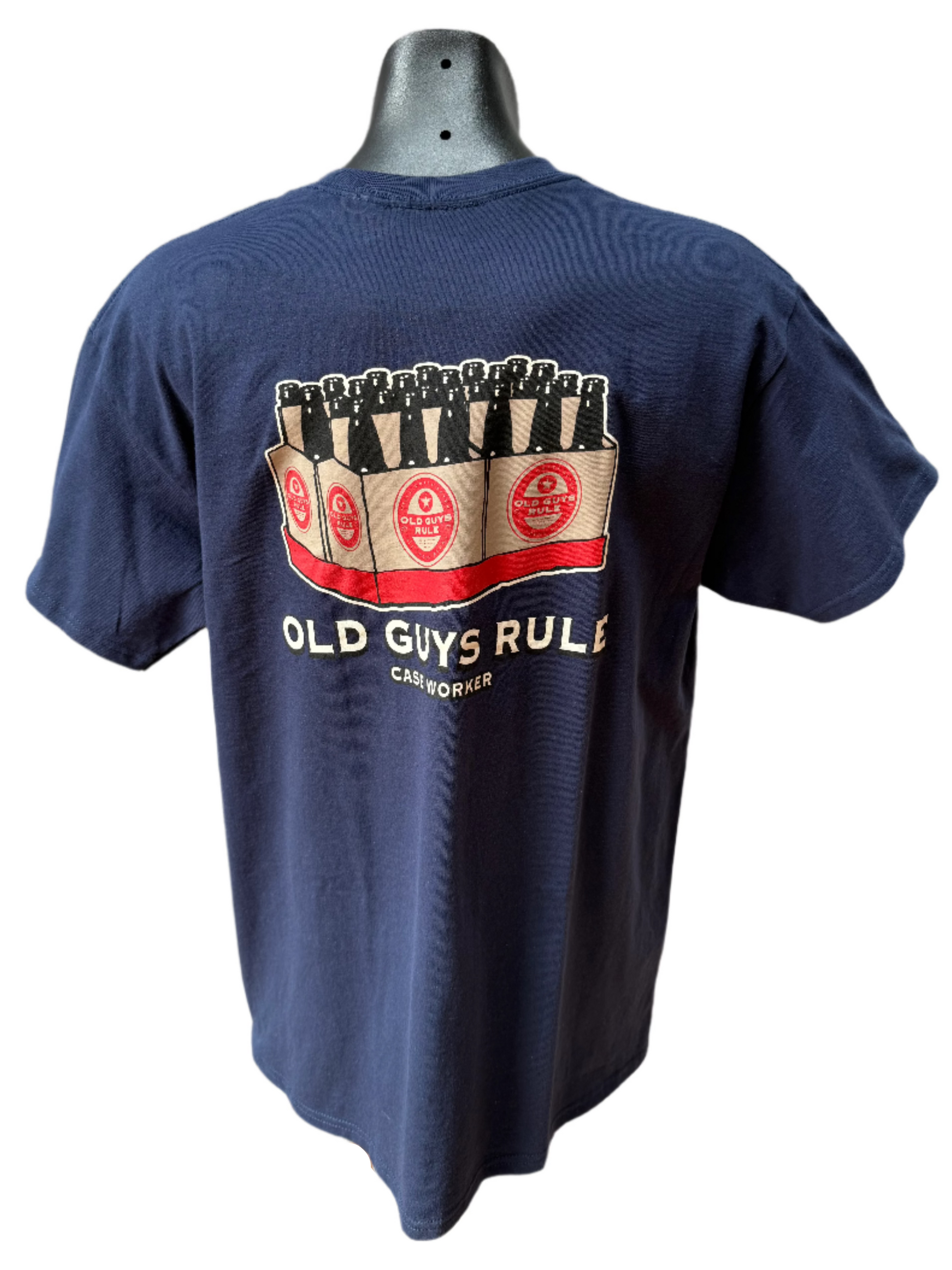 Perfect for all the Old Guys in your life, this Old Guys Rule brand tee features a large graphic print on back, with matching micro print on front! The perfect gift for the guy who has everything he needs!
