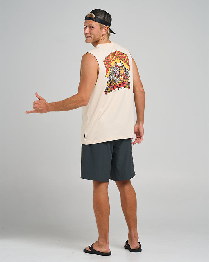 Featuring a standout front chest print and full back graphic, this muscle delivers classic Hueys attitude with every wear. The ribbed neckband adds structure, while the woven sideseam label finishes the look with quality detailing.