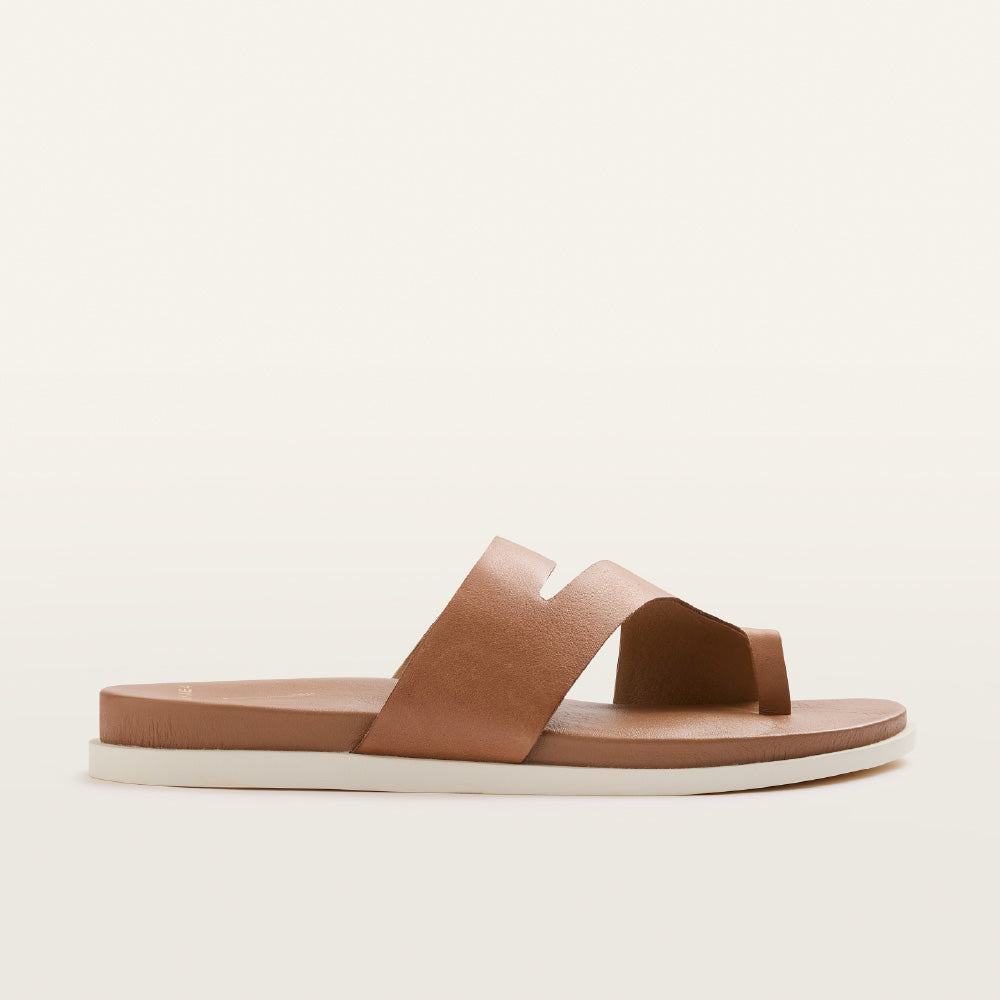 The FRANKiE4 Riviera Leather Sandal in Tan brings a refined edge to warm-weather styling. Designed with an elegant asymmetrical silhouette and toe-loop detail, this sandal is crafted from supple leather and finished with a natural, flattering profile. Built on the podiatrist-designed Sole Hero® Footbed with triple-layer cushioning, Riviera delivers all-day comfort and support without compromising on style. A durable rubber sole ensures stability, making it ideal for high-rotation everyday wear.