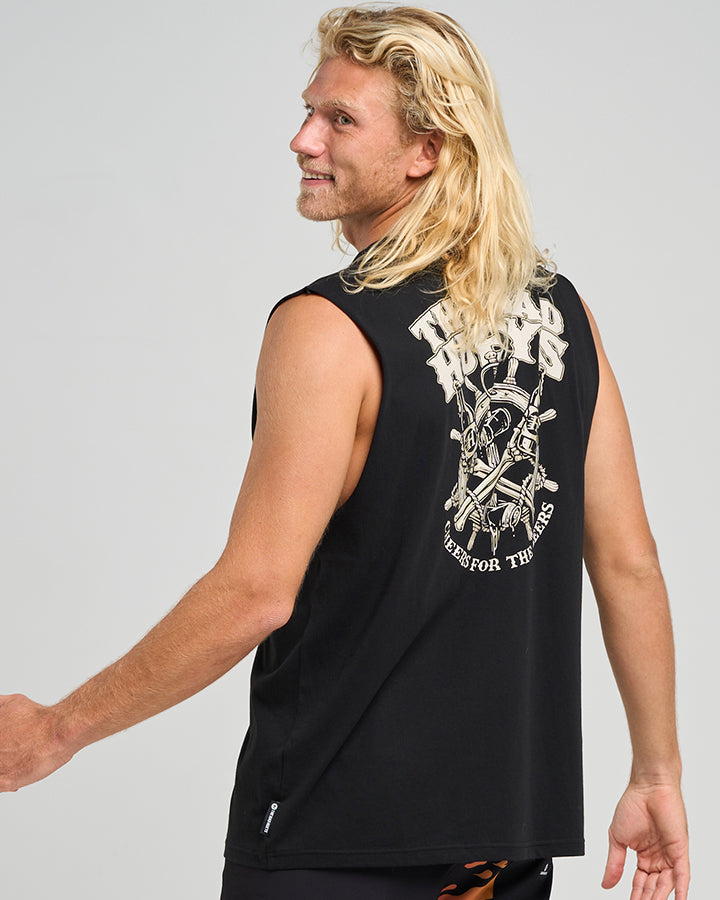The Ship Wheel Beers Muscle brings classic Hueys attitude with a bold ship’s wheel graphic surrounded by beers and bones, finished with the slogan “Cheers for the Beers.” Made for anyone who loves the ocean, good mates, and an icy cold tin, this easy-wear muscle is perfect for days on the water or chilling onshore. A go-to style for living the good life, Aussie way.