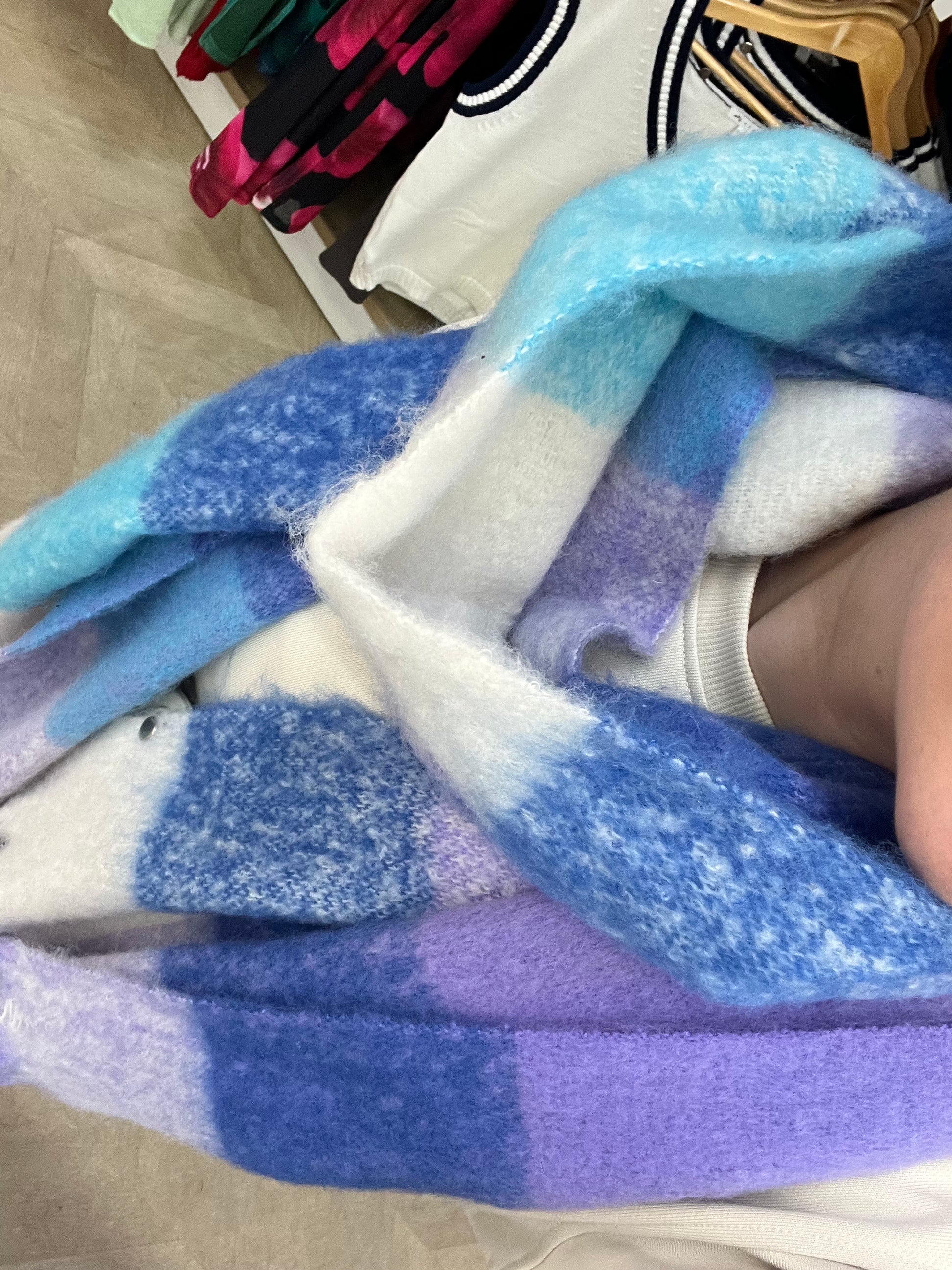 Crafted from soft, high-quality polyester, it features a classic multi-colour design, stylish tassel edging, and a generous width—making it easy to wear as a scarf, shawl, or wrap.