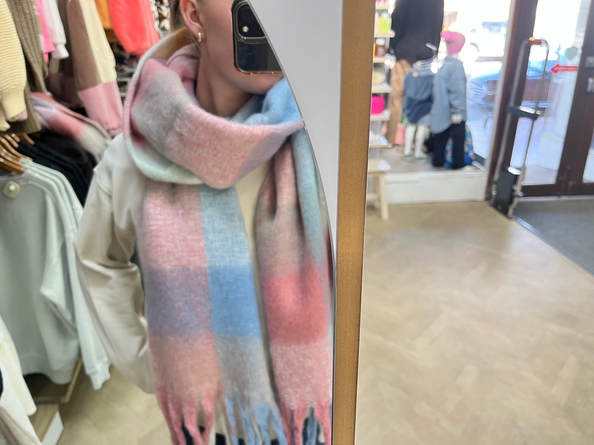 Crafted from soft, high-quality polyester, it features a classic plaid design, stylish tassel edging, and a generous width—making it easy to wear as a scarf, shawl, or wrap.