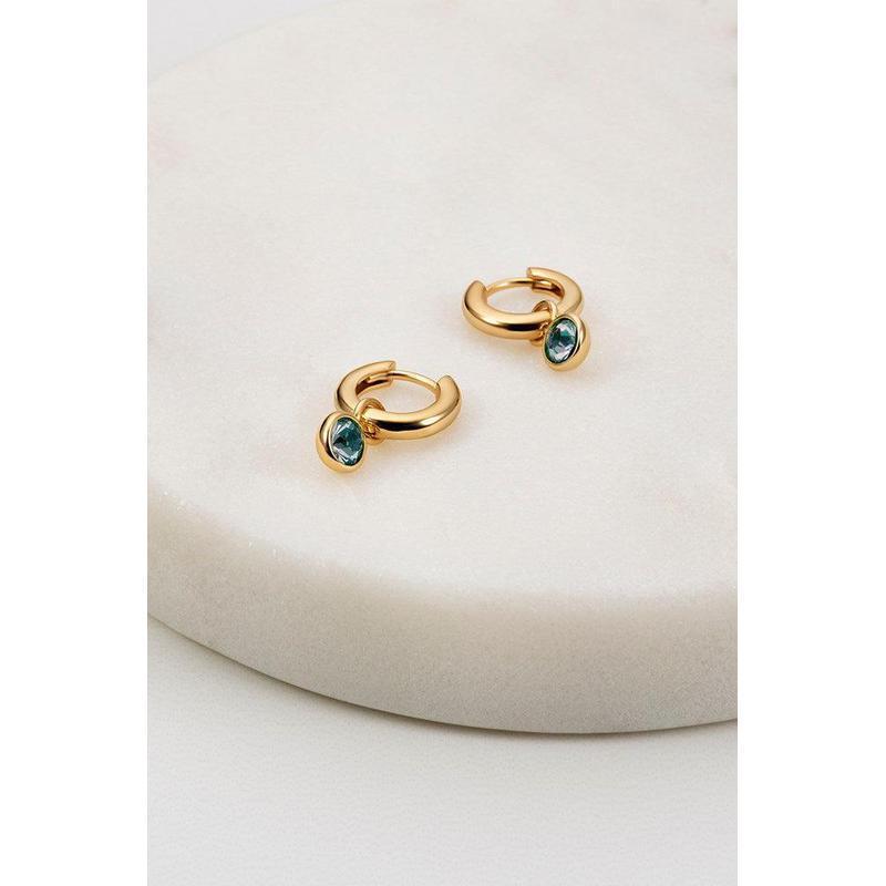 A stunning huggie hoop with a sea crystal charm. These earrings showcase a captivating grey crystal charm that adds a unique touch of elegance and allure to your style. The huggie hoop design offers a comfortable and chic accessory, perfect for daily wear or adding a hint of sophistication to your special occasions