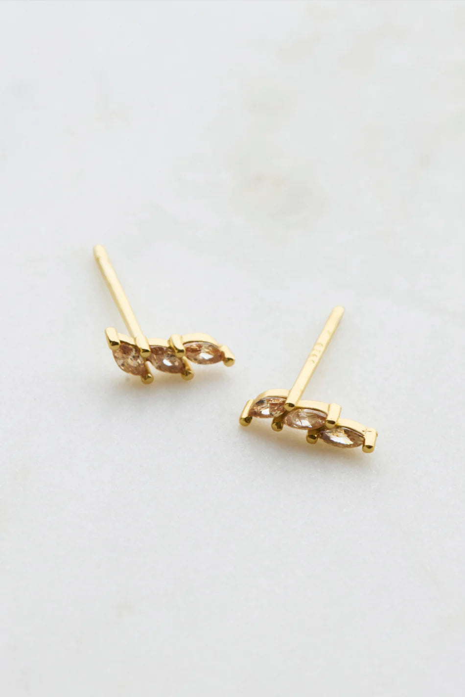 Triple Crystal Stud - Peach / Gold